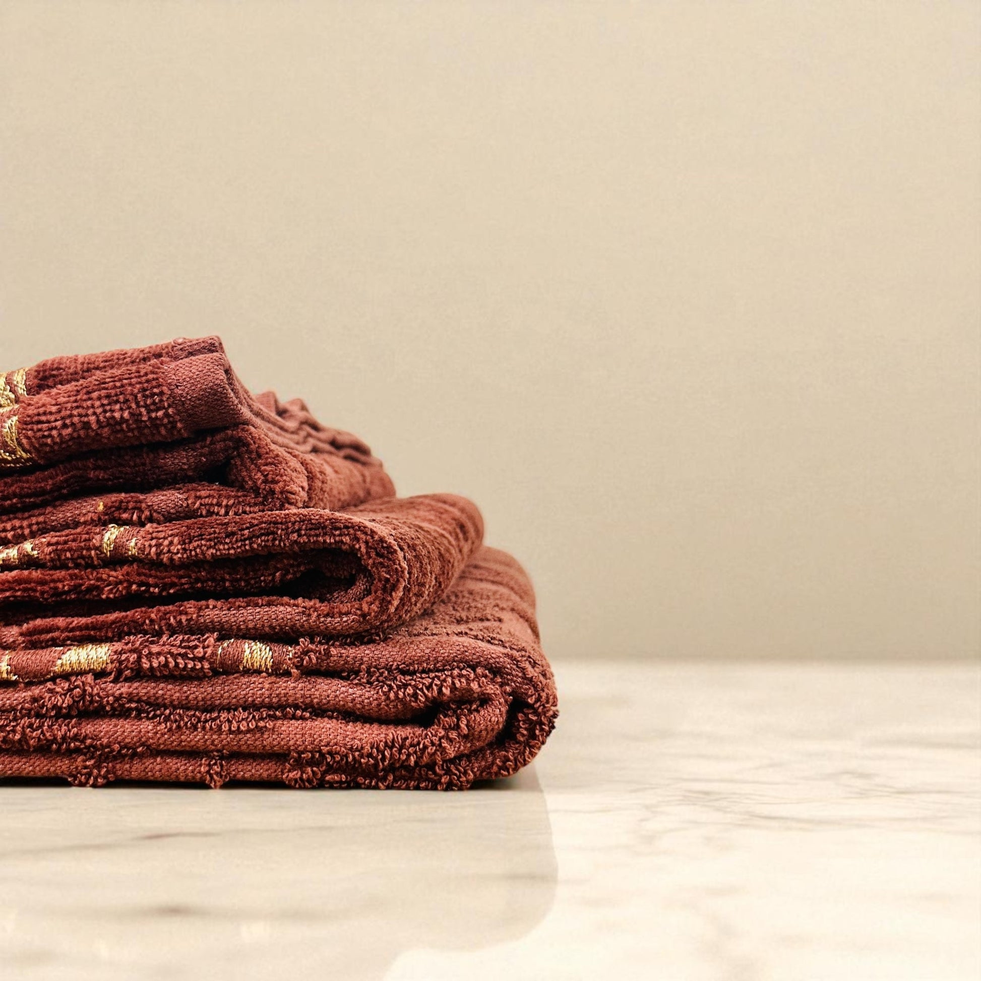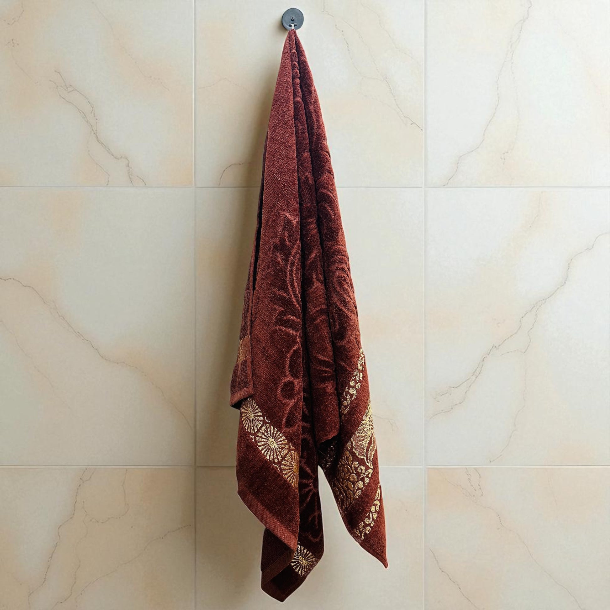 Its gentle peach hue and delicate golden detailing evoke a sense of calm and refinement, while the textured folds add visual depth to your space. Whether hung with grace or folded with intention, Havenloom brings a touch of artistry to your bathroom sanctuary.