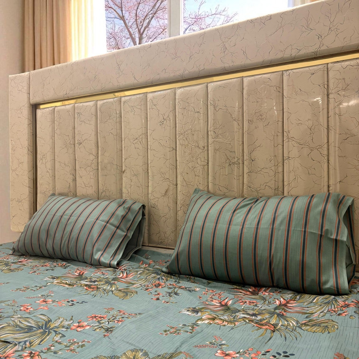 Premium Cotton 3 Pcs Bed Sheets King Size - Muted Teal