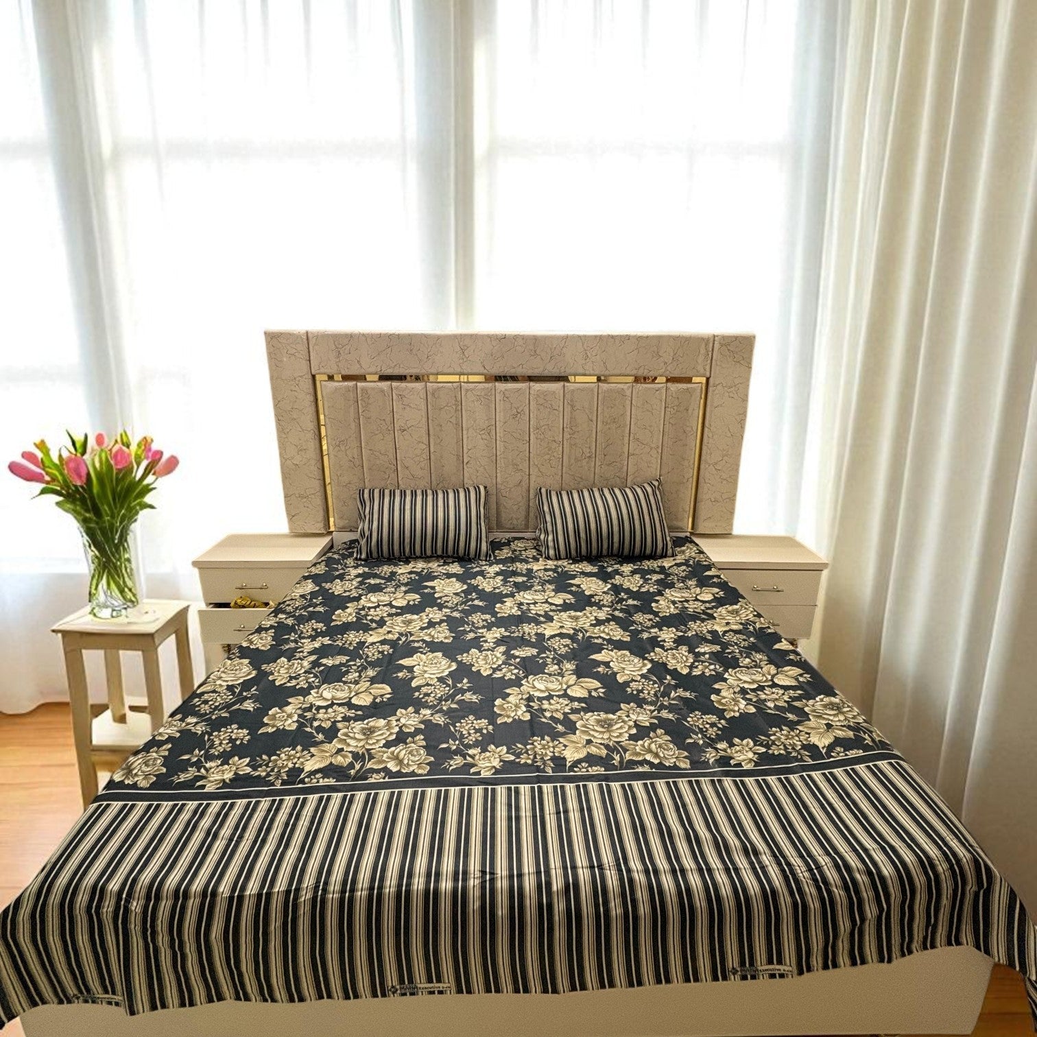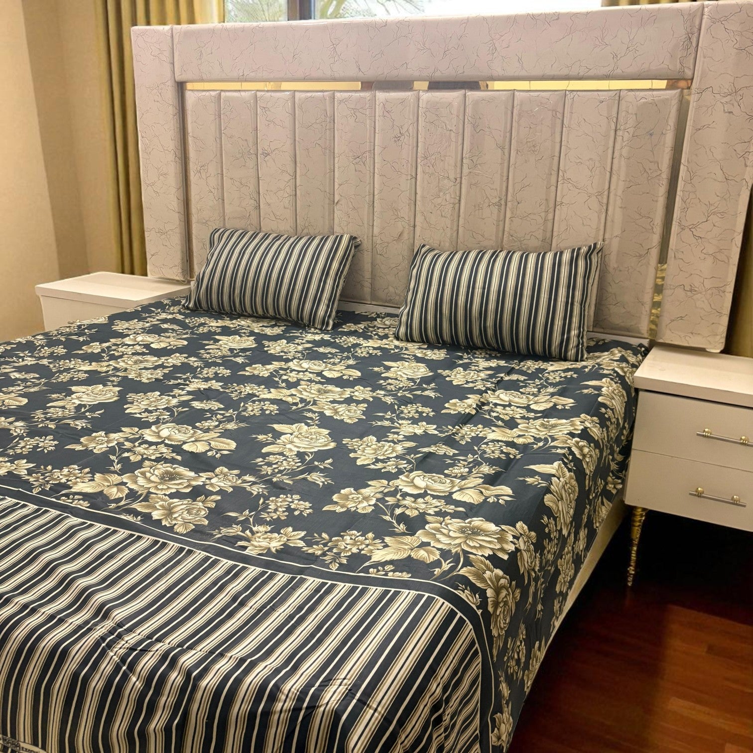 Premium Cotton 3 Pcs Bed Sheets King Size - Navy Bloom