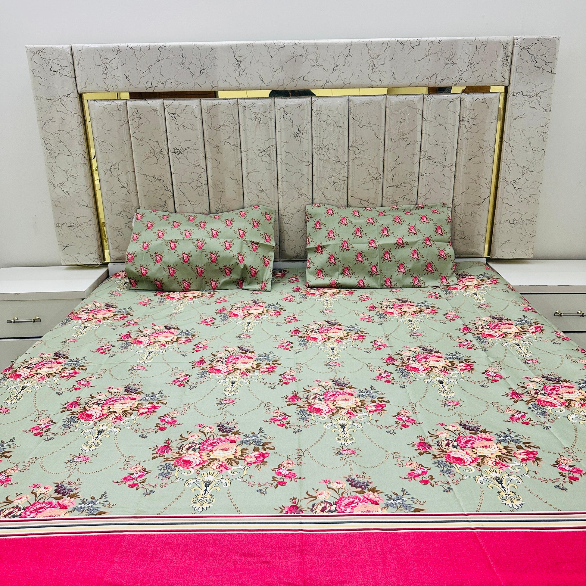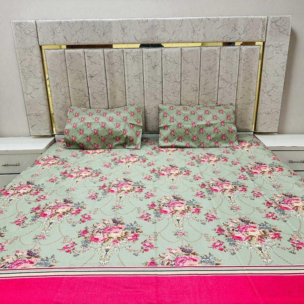 Premium Cotton 4 Pcs Bed Sheets King Size - Roseleaf Charm